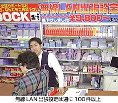 また、WindowsXPパソコンなら、無線LANカードを挿して、設定を変更するだけですぐに接続できるのでデモも容易です。販売員は全員、無線LANカードをポケットに常備していますから、いつでも即座にお試しいただけます。 |