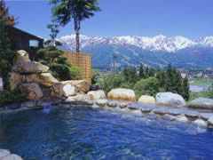 ●露天風呂からは北アルプスの大パノラマが正面に広がります |