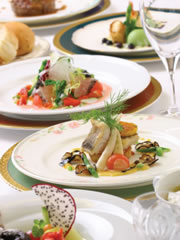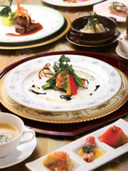 西洋料理のコースです。地元の旬の素材を使用し、お箸で召し上がって頂ける気軽なスタイルが宿泊者に特に人気です。 |