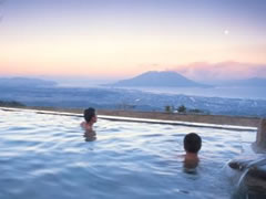 北は霧島連山から、目の前の桜島・錦江湾、鹿児島市街地、南に大隅半島と景色のスケールが特に素晴らしくパノラマ温泉という名前もそこから由来する。夜は、遠くまで続く煌めく夜景と…、鹿児島に行くなら、この立地を味わわない手はない!(笑) 女性露天は、やや狭めだが一段高い位置にあり見晴らしはさらに良い。 |