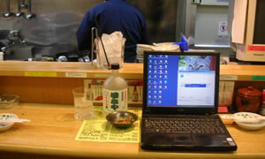 江古田駅のすぐ近く。終電よりちょっと遅くまで開いています。仕事のメールを片付けたいときや、飲みながらメールやチャットを楽しみたいときに、とても居心地のいい店。常連のお客さんと顔見知りになると、ホットな話題をネットで検索しながら会話を楽しんだり、お互いのお気に入りサイトを紹介したり。